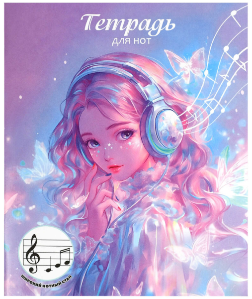 —Тетрадь для нот для младших классов, А5+, 24 л, глянцевая ламинация, мягкий переплёт, 70006