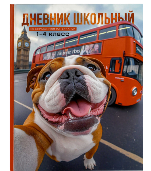 Дневник школьный 1-4 класс, АНГЛИЙСКИЙ БУЛЬДОГ ; твёрдый переплёт 7БЦ, А5+, 48 л., глянцев, 71001