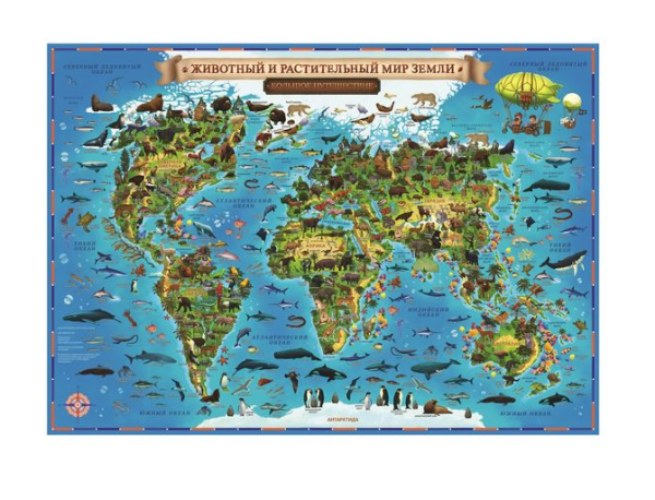 Карта Мира детская Globen "Животный и растительный мир Земли", 101х69 , 978-5-6040903-1-2
