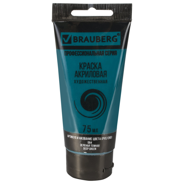 —Краска акриловая художественная BRAUBERG ART CLASSIC , туба 75 мл , ЗЕЛЕНАЯ ТЕМНАЯ, 191109