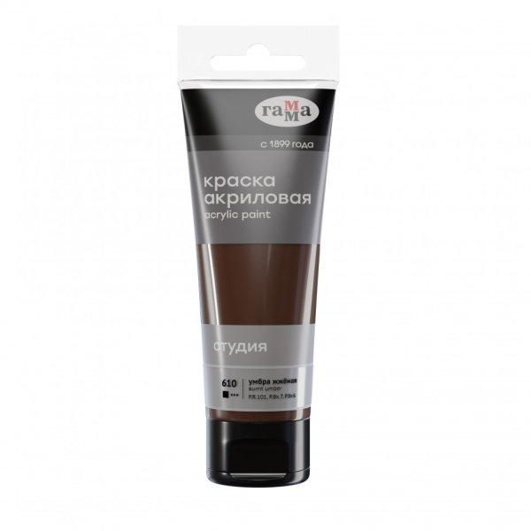 —Краска акриловая художественная Гамма 'Студия' умбра жженая, 75 мл, 280220610