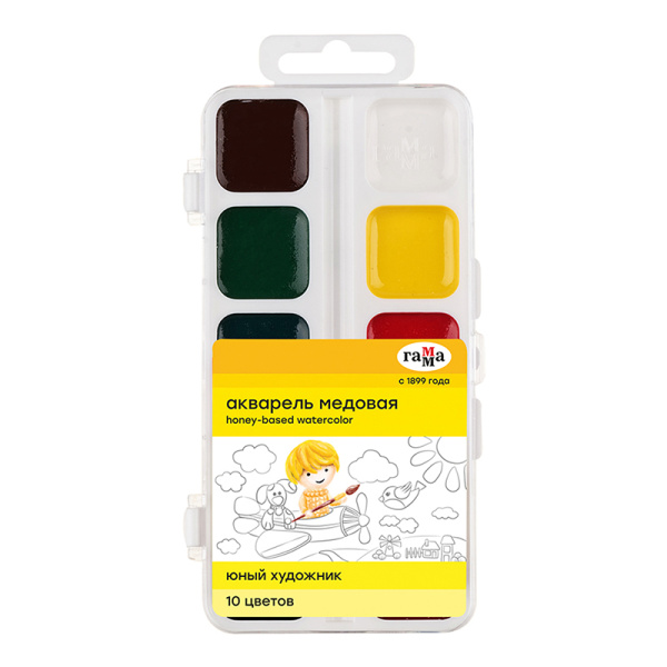 Акварельные краски 10 цв. Гамма 'Юный художник', медовая, пласт. уп., европодес, без кисти, 212072