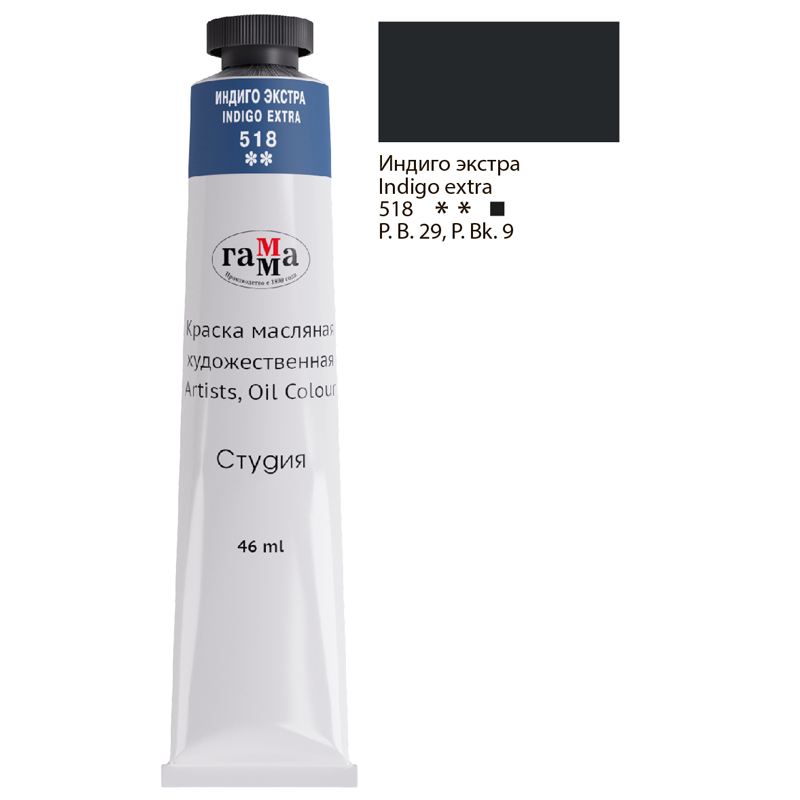 —Краска масляная художественная Гамма 'Студия' , 46 мл ,туба , индиго экстра, 0.00.А46.518