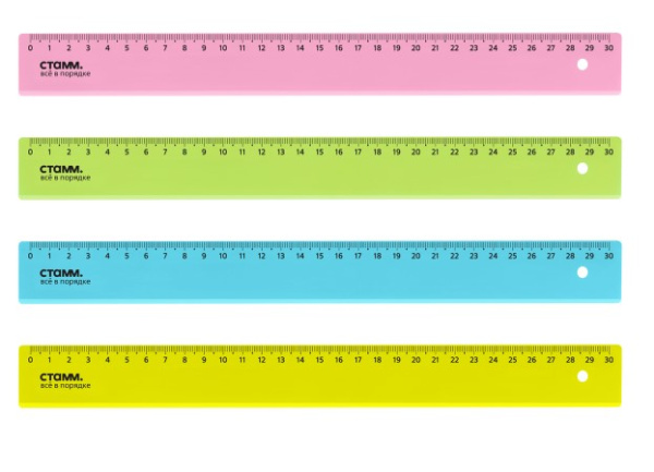 —Линейка 30 см, СТАММ, пластиковая, прозрачная, неоновые цвета, ассорти, ЛН32