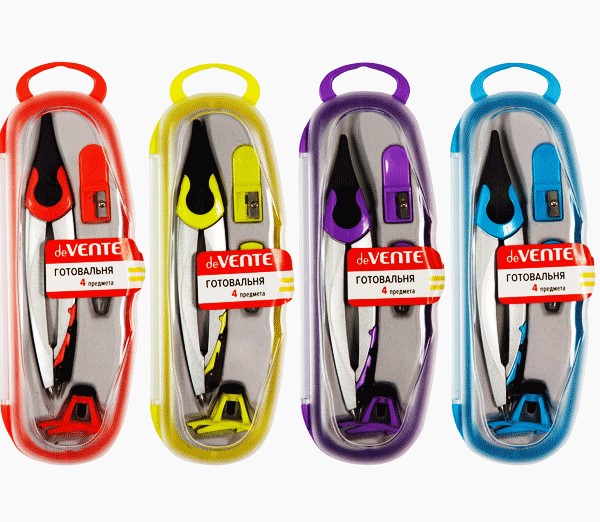 —Готовальня школьная deVente (4 предм.), цветной корпус, 5093604