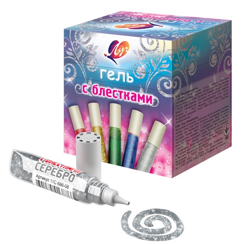 —Гель с блестками 'Луч', серебро, 5 мл, (1 шт), 11С 686-08