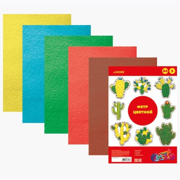 Фетр цветной A4 'deVENTE. Яркие цвета' 5 цв, 5 л, толщина 2 мм, европодвес, 8040756