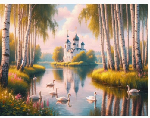 —Картина по номерам 30х40 см, Церковь у озера, ХК-5228