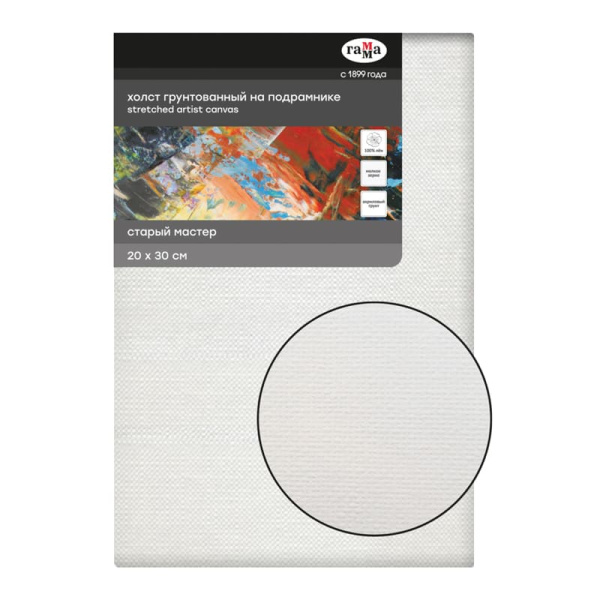 Холст на подрамнике Гамма 'Старый Мастер' 20х30 см., 100% хлопок, 280г;м2, мелкое зерно, 100920204