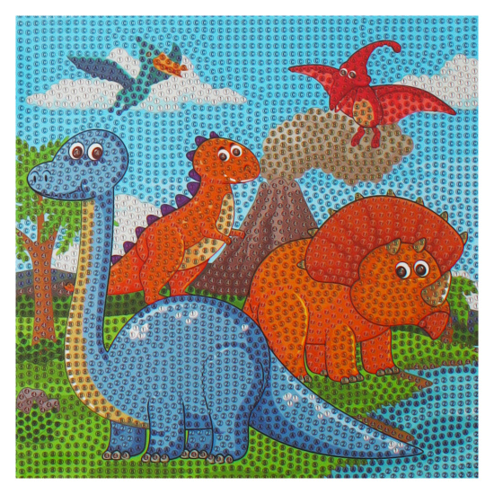 —Алмазная мозаика ДИНОЗАВРЫ, пластиковая основа 20x20 см, M-12179