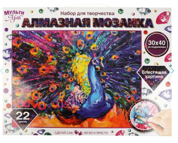 —Алмазная мозаика 30х40 см, с полным заполнением на подрамнике, Павлин, МУЛЬТИ АРТ, 357311