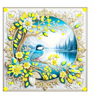 —Алмазная мозаика СИНИЧКА НА ВЕТКЕ, деревянный подрамник 20х20 см, M-12210